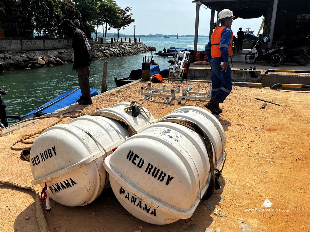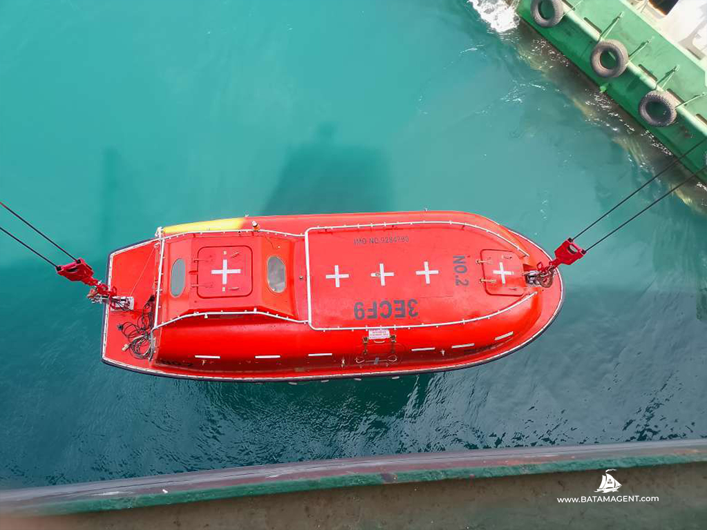 The lifeboas was towed to the Red Ruby at Batam Anchorage.